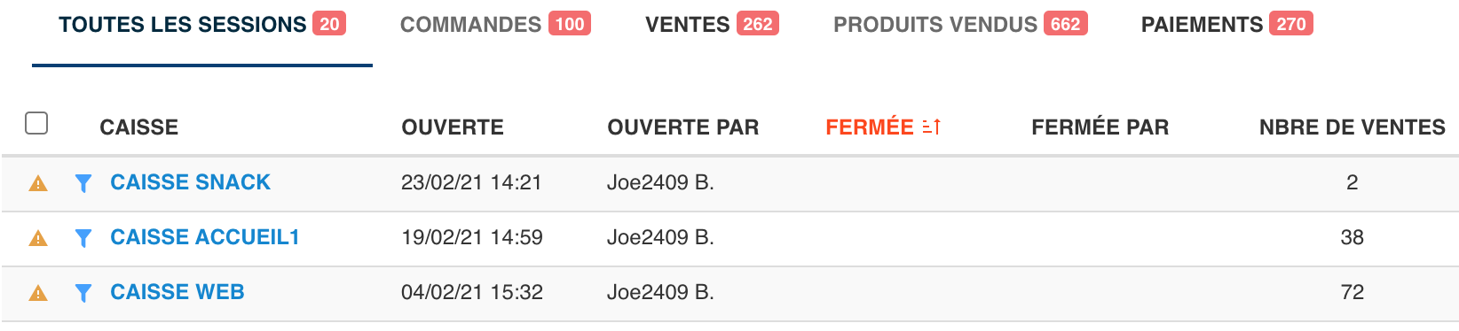 Au sein de la caisse Web, que vous retrouvez via Menu / Caisse / Session de Caisse