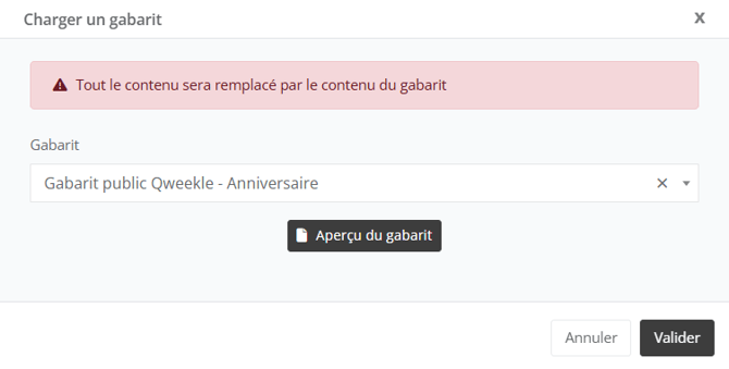 Si vous les désirez, nous proposons un gabarit qui peut être chargé lors de la création de la campagne avec le bouton "Charger un Gabarit"