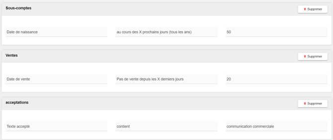 Pour déclencher cette campagne automatiquement, définissez un segment de clients dont l'anniversaire (ou celui de leurs enfants) arrive dans 50 jours.