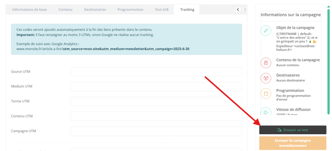 Cet onglet vous permet d’ajouter des codes de suivi (UTM) à vos liens. Cela permet de :