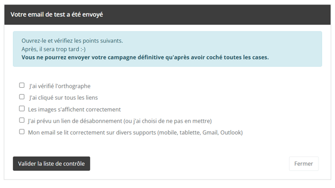 📩 Le test est envoyé avec la mention [TEST] dans l’objet (sauf si vous avez décoché cette option).