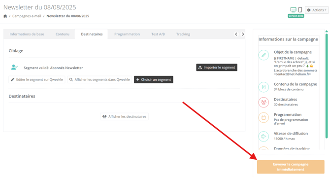 🛑 Important : même si vous avez programmé l’envoi, vous devez cliquer sur « Envoyer » pour que la campagne parte au bon moment.