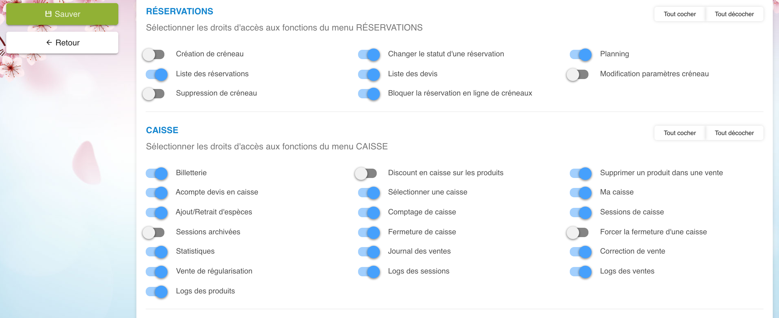 - Profil "Manager" : l'utilisateur peut accéder au planning, modifier une réservation et appliquer une réduction sur un produit en caisse.